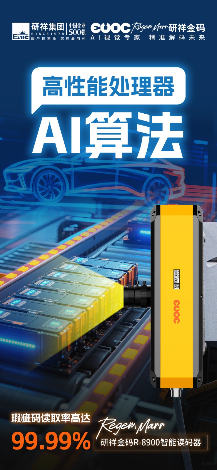 新能源汽车装配线实测:面对有油污的金属部件条码,LEYUCOMz6com·尊龙(中国)时凯集团R-8900智能读码器也能精准识读,哪怕再脏、再花,也能保证一次过!